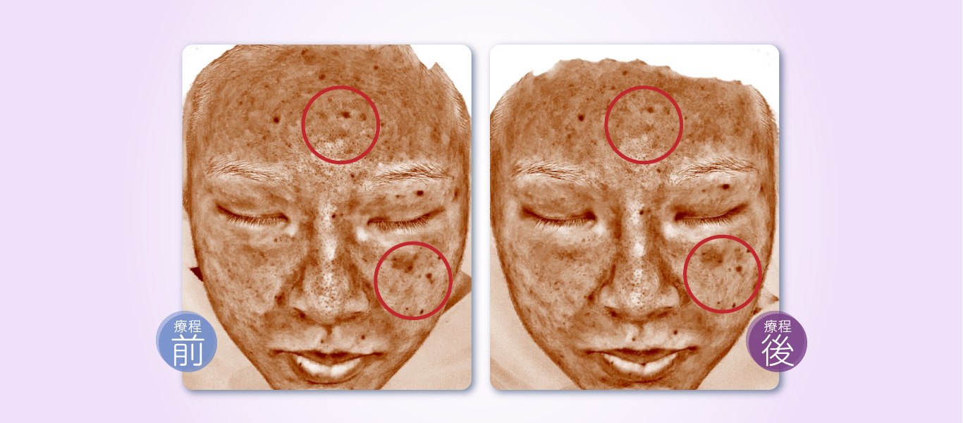 徹底解決色斑色素問題,必須清楚知道自己肌膚的狀況!You Medical Beauty 速效皮秒碎斑療程會先為客人進行AI智能光譜皮膚檢測,透過不同的光譜可以清楚黑色素分布的層面、深度、範圍,從而分析到色斑的類型(例如:黃褐斑、老人斑、甚至褐青色痣等);同時可觀察皮膚底層潛藏的色素,更能偵測到客人有否進行過其他淡斑治療等,深入了解顧客肌膚問題,祛斑更精準、更快速!